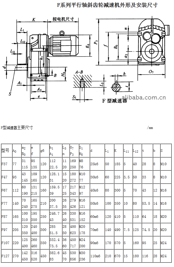 1. 型號與標記 (1)型號 a.F型—普通軸伸聯軸平行軸斜齒減速器; b.FA型—軸裝式平行軸斜齒減速器; c.FF型—法蘭式平行軸斜齒減速器; d.FAF型—軸裝法蘭式平行軸斜齒減速器。一、產品特性1.高度模塊化設計:可以方便地配用各種型式的電動機或采用其它動力輸入。同種機型可配用多種功率的電動機。容易實現各機型間組合聯接。2.傳動比:劃分細,范圍廣。組合機型可以形成很大的傳動比,即輸出極低的轉速。3.安裝形式:安裝位置不受限制。4.強度高、體積小:箱體采用高強度鑄鐵。齒輪及齒輪軸..